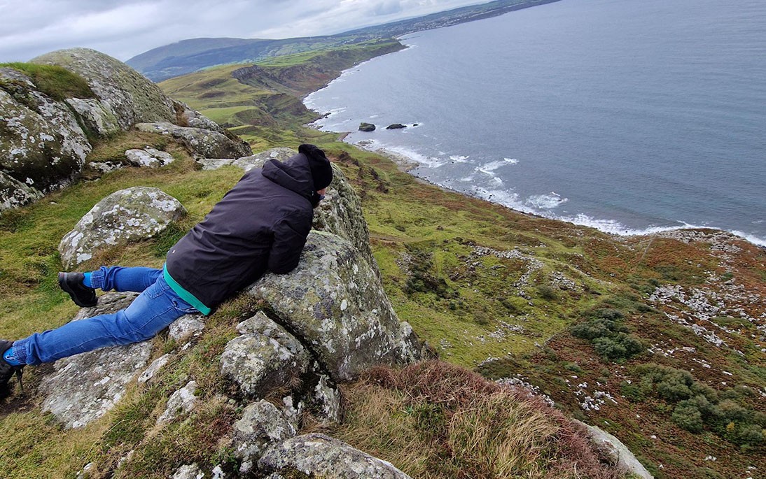 Zurück auf der Causeway Coastal Road führt unsere Route zunächst in das kleine Städtchen Ballycastle und dann weiter zum Kinbane Castle . Um zum Kinbane Castle zu gelangen, muss man vom Parkplatz aus einer langen Treppe hinunter zur Küste laufen, aber die Mühe lohnt sich. Unten angekommen, findet ihr die historische Burgruine auf einer langen, ins Meer ragenden Klippe, eingebettet in die malerische Landschaft Nordirlands. Als Nächstes halten wir kurz am Portaneevy Car Park & Viewpoint, wie der Name schon sagt, einem Parkplatz, der aufgrund seiner Lage wunderschöne Ausblicke auf die Küste und das Meer bietet.